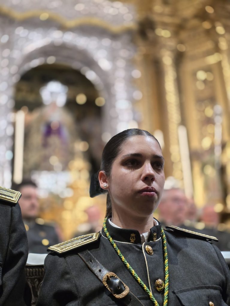 Más allá de lo estrictamente musical, la noche dejó imágenes imborrables: miradas elevadas hacia la Virgen antes de cada entrada, gestos de recogimiento, emoción contenida y lágrimas que, en algunos casos, no pudieron disimularse. La profunda vinculación de la banda con la devoción macarena, presente incluso en su identidad, se hizo patente en cada detalle.