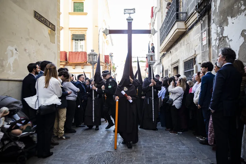 El discurrir de la Hermandad de la Lanzada estuvo marcado por el orden y el recogimiento a lo largo de todo el recorrido.