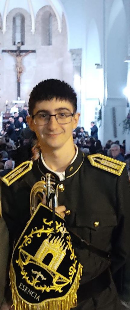 En septiembre de 2017 entré en la escuela de Las Cigarreras hasta el 2021. Una experiencia maravillosa. En octubre del mismo año, el día 12, hablando con Don Enrique León Serrano de Cofradías, me ofreció la oportunidad de entrar en la Banda de Cornetas y Tambores Esencia y cuatro años después sigo con la misma ilusión, agradecido de formar parte de esta gran familia.”